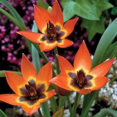 Botanical Tulip Little Princess is excellent naturalizer! This early blooming short tulip has adorable orange flowers with black-yellow center. Perfect for landscaping, bed, borders and containers. Comes back every year!